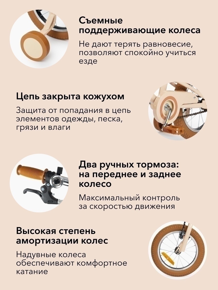 Велосипед Happy baby RINGO (Хеппи беби ринго) - идеальный первый велосипед. Геометрия рамы и форма сиденья разработаны специально для детей. Надувные колёса амортизируют и обеспечивают комфортное катание. Для безопасности велосипед оснащён передним и задним ручными тормозами, а цепь закрыта кожухом. Съёмные поддерживающие колёса позволяют учиться езде на велосипеде в спокойном режиме и не терять равновесие. Высота руля и высота сиденья регулируются. Рукоятки руля изготовлены из мягкой резины с ограничителями, чтобы ладошки не соскальзывали во время езды. Велосипед оснащён звонком и светоотражающими элементами спереди и сзади. Стильный и удобный велосипед покорит сердце ребёнка и подарит множество ярких впечатлений.
