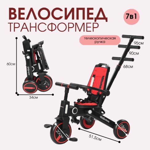 Размеры данной модели детского транспорта в сложенном виде: длина 60 см, ширина 33 см, высота 34 см.