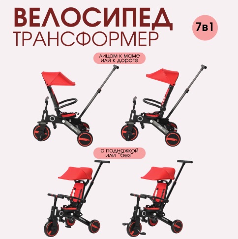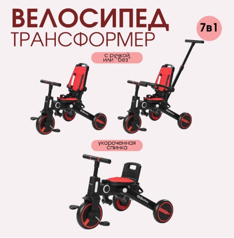 Благодаря семи вариантам использования, ребенок постепенно будет учиться ездить на велосипеде самостоятельно. По мере необходимости ненужные аксессуары можно снимать, пока велосипед не превратится в модель с низкой спинкой и педалями.