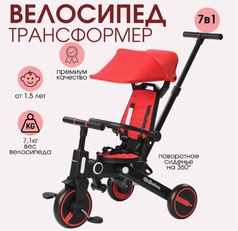 Вашему ребенку больше 1 годика, на улице прекрасная погода, а ребенок на лице уже не спит? Подарите ему новые, яркие приключения на свежем воздухе. Велосипед-коляска с поворотным сидением позволит возить ребенка по направлению к вам для удобного общения. Капюшон-тент от солнца защитит кроху от яркого солнышка. Удобное управление за счет регулируемой по высоте родительской ручки, которая управляет передним колесом. Для безопасности ребенка, как в коляске, предусмотрены ремни безопасности, съемный бампер, мягкий чехол на сидении.
