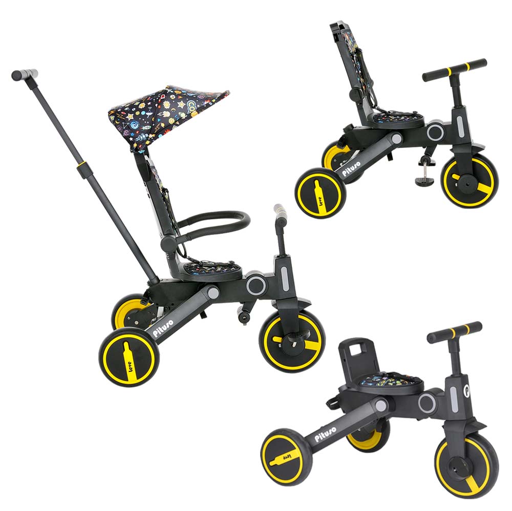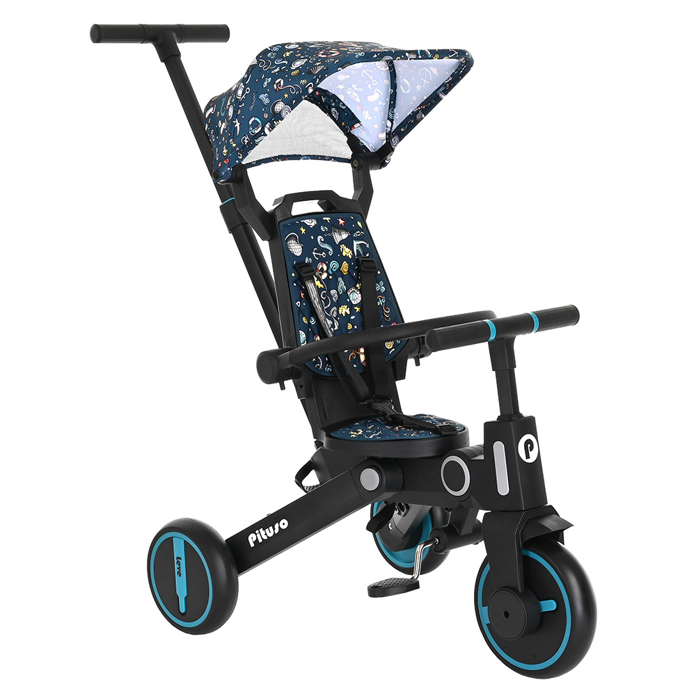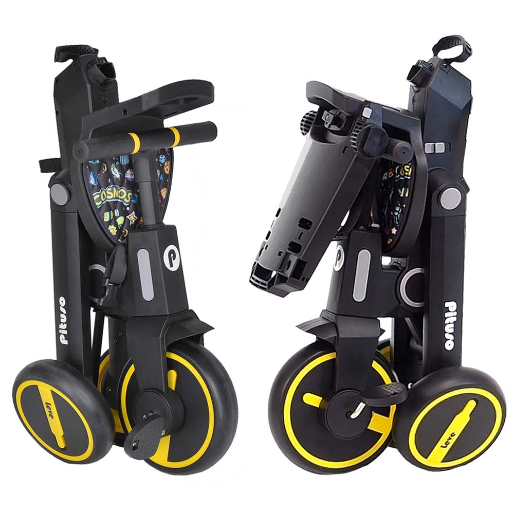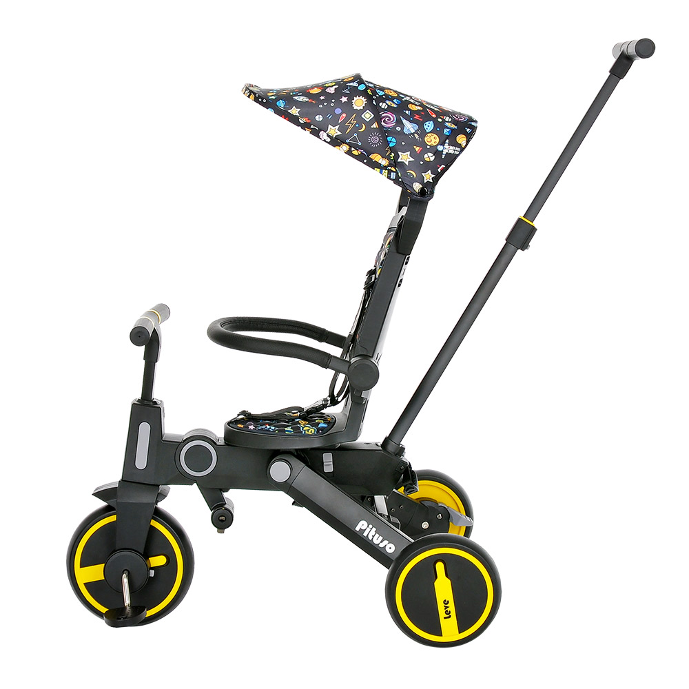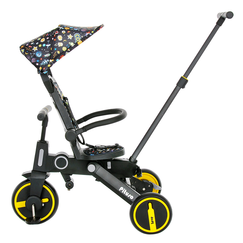 Велосипед складной PITUSO Leve (Питусо Лив) - очень легкий, детский, 3-х колесный велосипед для ребенка от 1,5 лет. Особенностью велосипеда является его компактное сложение и совсем небольшой вес. С таким велосипедом удобно путешествовать, брать в поездки и в магазины. У велосипеда стильный дизайн и огромный функционал. Велосипед имеет 7 конфигураций, которые позволят организовать прогулку с ребенком максимально удобно. Он меняется по мере роста ребенка от велосипеда - коляски с сидением против хода движения до легкого трехколесного велосипеда без лишних аксессуаров. Пока малыш маленький велосипедом легко управлять с помощью регулируемой ручки.