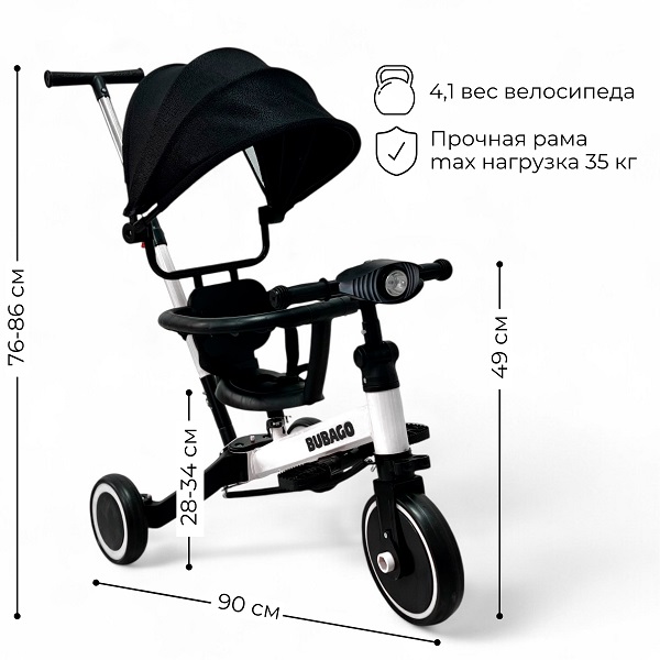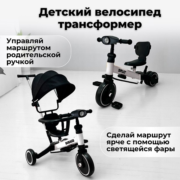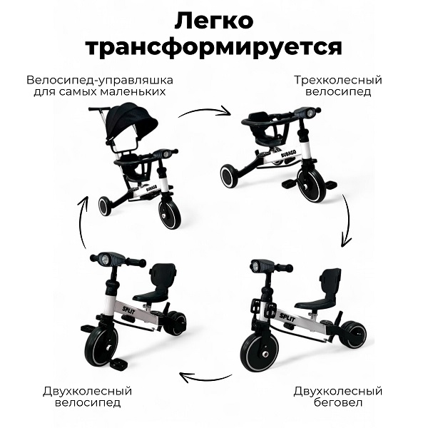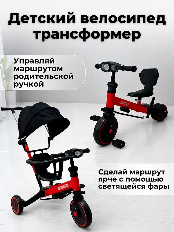 Велосипед-трансформер Bubago Split (Бубагой сплит) - это многофункциональный трехколесный велосипед для мальчиков и девочек, который легко адаптируется под рост и умения ребенка. Подходит для детей ростом от 80 до 120 см, и станет отличным первым транспортом для прогулок, площадки, дома и активного отдыха.