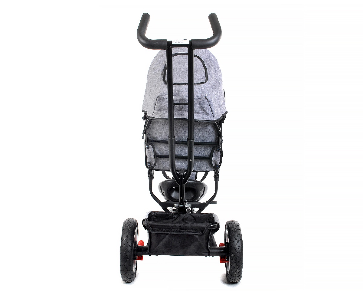 Крыша велосипеда складывается и снимается, как у коляски. На задней оси закреплена корзина, а на руле есть звонок.