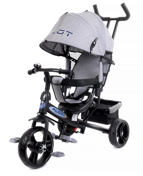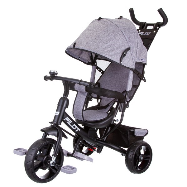 Велосипед Pilot (пилот) - трехколесный велосипед с регулируемой по высоте ручкой управления. Дуга безопасности снимается и размыкается. Также есть двухточечный ремень безопасности.