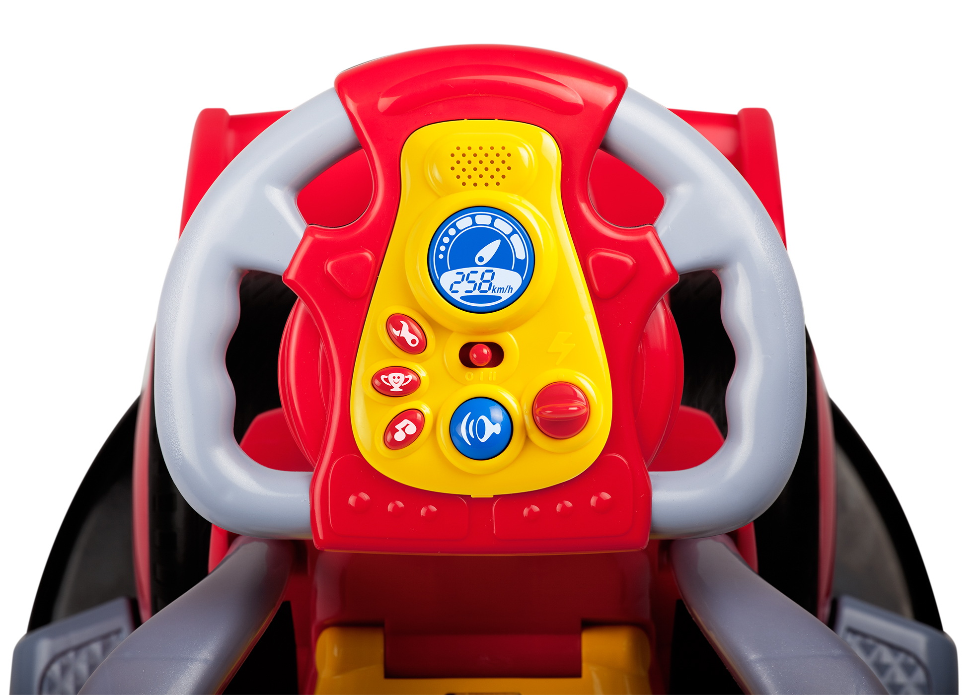 Передние поворотные колёса придают машинке маневренность.