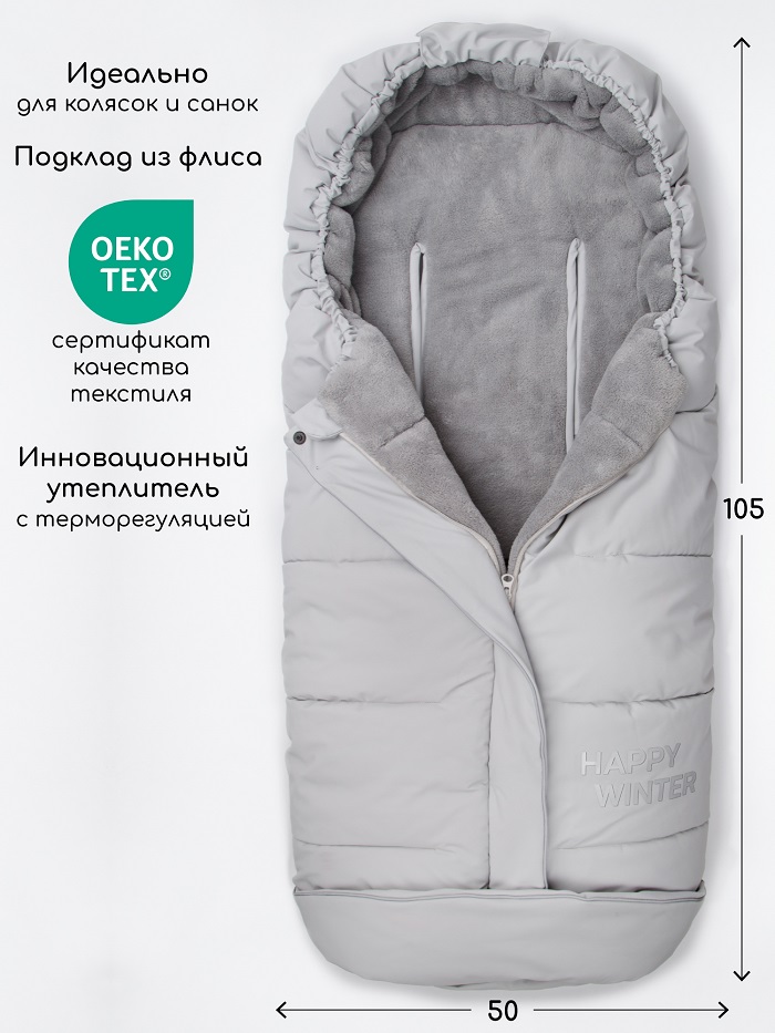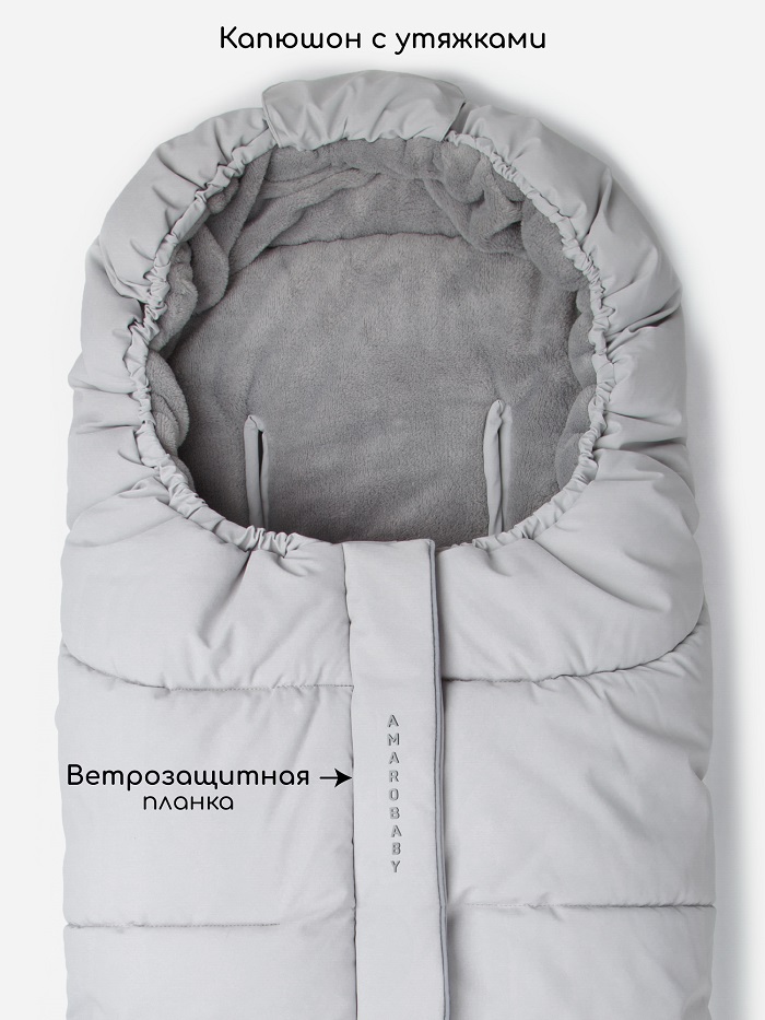Конверт в коляску Amarobaby POLAR легкий, имеет длину 105 см, ширину 50 см. Внутри конверта подкладка из флиса и современный утеплитель холлофайбер 280 гр. Верхняя часть конверта не пропускает влагу во внутрь конверта, имеет ветрозащитную планку и светоотражающие элементы. Для хорошего крепления в коляске предусмотрены прорези для ремней безопасности и антискользящие накладки. Для более надежной защиты ребенка от холода капюшон стягивается. Липучки высокого качества не потеряют свои свойства со временем.