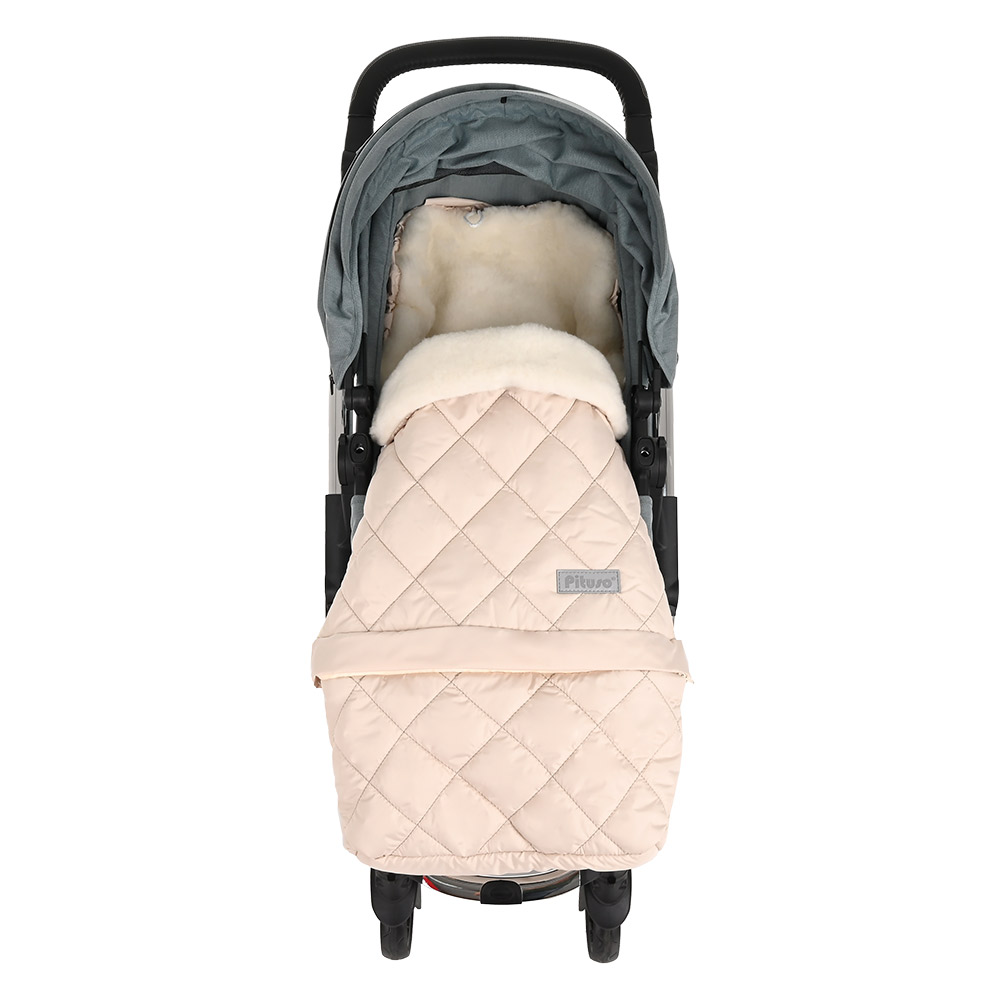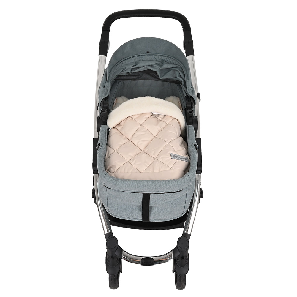- Конверт подходит для большинства колясок, имеются специальные прорези для 5-ти точечных ремней безопасности.