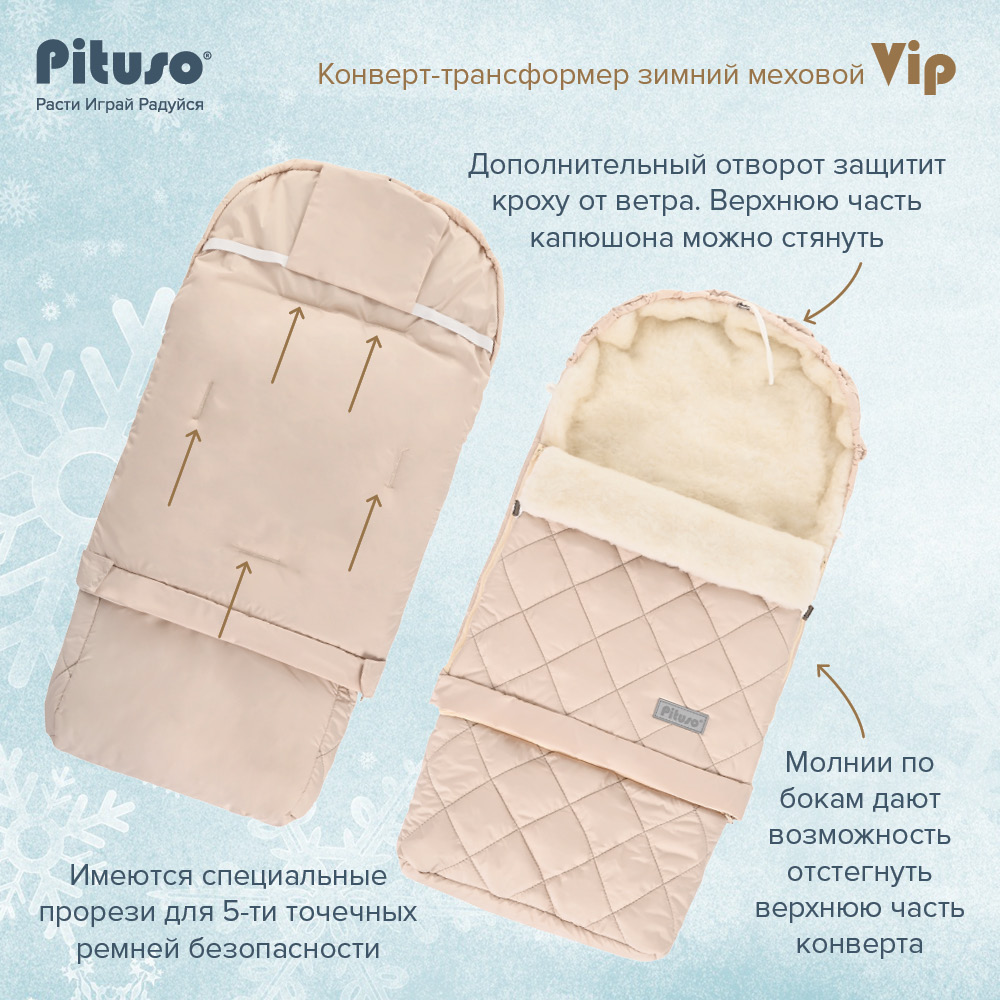 Купить зимний конверт Pituso Vip (Питусо вип) в нашем магазине очень просто — Вам достаточно оформить заказ онлайн на сайте или по телефону +7(925)266-83-06. Мы доставим товар в самое короткое время по Москве и Подмосковью (бесплатно до 10 км за МКАД). Так же отправляем в любой город России, в Армению, в Киргизию, в Крым, в республику Беларусь с помощью транспортной компании.